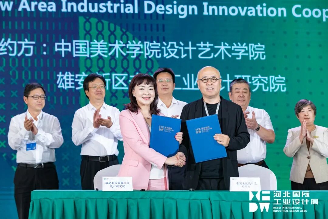 On September 20, the Signing Ceremony of the Project Matching Results for the main venue of the 3rd Hebei International Industrial Design Week was successfully held in Xiongan New Area. Xu Kehua, deputy directors of the Hebei Provincial Department of Industry and Information Technology, Liu Shujun, Deputy Director of the Administrative Committee of Xiongan New Area, Yu Guoyi, Director of the Reform and Development Bureau of the Xiongan New Area, Ma Yun, Director of the Science and Technology Division of the Hebei Provincial Department of Industry and Information Technology, Ding Jinjun, Deputy Director of the Reform and Development Bureau of the Xiongan New Area, Bi Xuefeng, Dean of The College of Design and Art, China Academy of Fine Arts, Shirley Feng, director of Hebei Industrial Design Innovation Center and other leaders and guests witnessed the signing of the results.